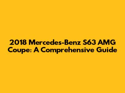2018 Mercedes-Benz S63 AMG Coupe: A Comprehensive Guide